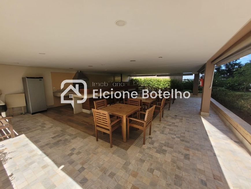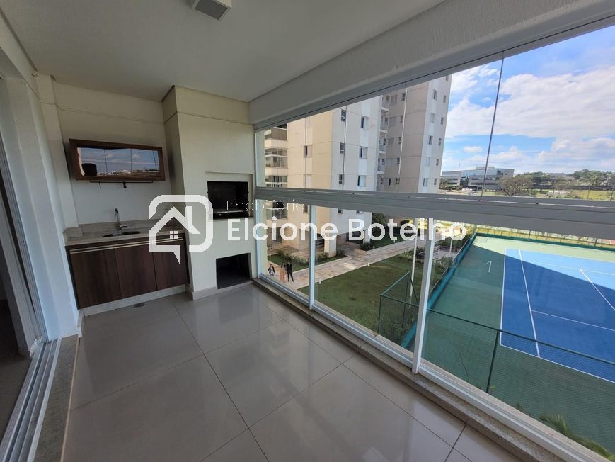 churrasqueira e pia, 03 quartos sendo suítes com armários e 01 com ar condicionado, (banheiros suítes com box e armários), cozinha montada de armários com fogão Cooktop e forno elétrico, área de serviço com armário e 02 vagas de garagem. Condomínio com água e gás incluso, área de lazer completa e portaria24 horas.