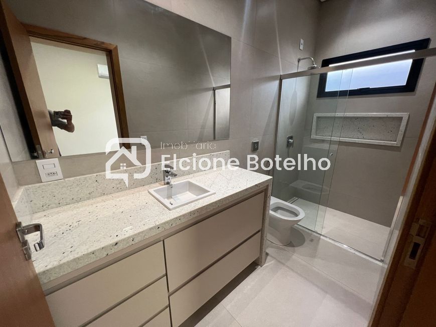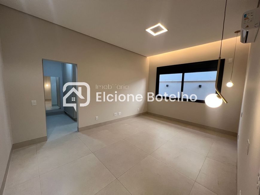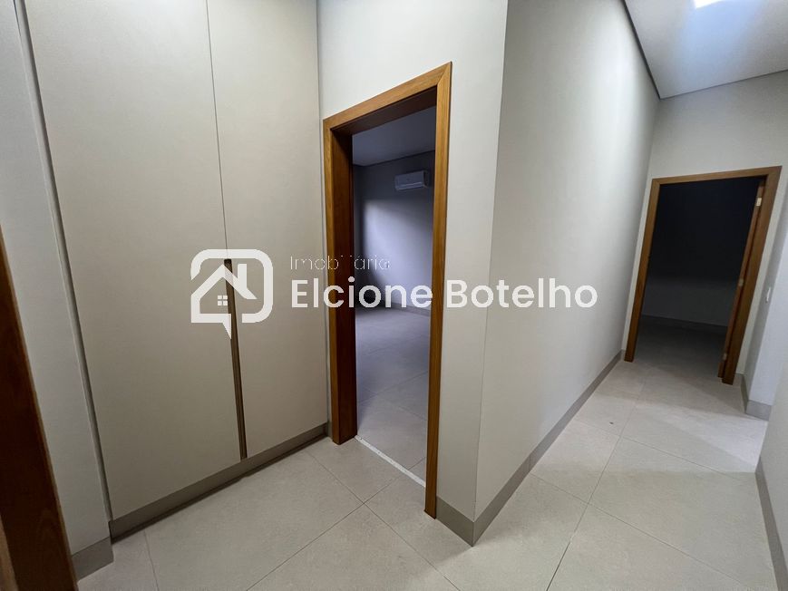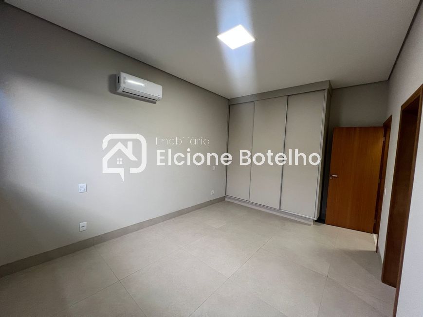 Ótima oportunidade de casa em condomínio fechado de alto padrão, disponível para aluguel, no bairro Nova Uberlândia, de aprox. 238m² de construção, com sala ampla em 3 ambientes com painel de tv, lavabo, escritório, hall dos quartos com roupeiro, 3 quartos suítes com armários, sendo 1 com closet e todos com ar condicionado, banheiros suítes com box, armário e espelho, cozinha montada de armário conjugada com área de churrasqueira, despensa, área de serviço com armário planejado, banheiro externo, área externa toda em porcelanato com jardins, 2 vagas de garagem. Condomínio oferece portaria 24 horas, área de lazer completa, quadra poliesportiva e salão de festas.