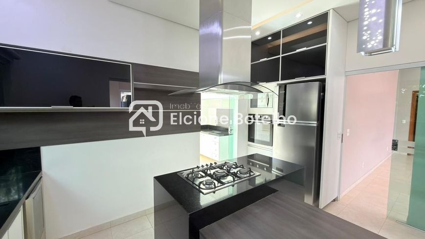 Casa de Condomínio fechado disponível parta locação no Bairro Nova Uberlândia, aprox. 222m² sendo sala em 02 ambientes com ar condicionado, varanda gourmet com churrasqueira, escritório com ar condicionado, 03 quartos suítes amplas com armários e ar condicionado