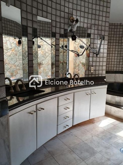 Casa estilo Sobrado, aprox. 700m² sendo o Primeiro piso: Sala de visita em 02 ambientes, sala de TV, lavabo, escritório, cozinha montada de armários e 02 quartos suítes, varanda gourmet ampla com sauna, piscina, ducha, área de serviço, e 04 vagas de garagem. Segundo piso: 04 quartos suítes todos com armários sendo 01 master com jardim de inverno e hidromassagem. Imóvel com cerca elétrica.
